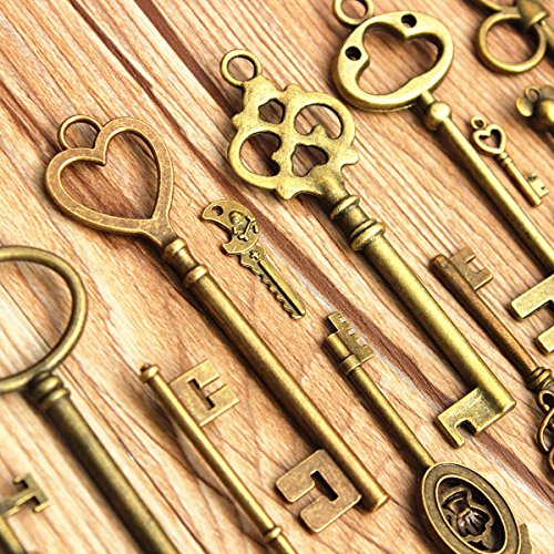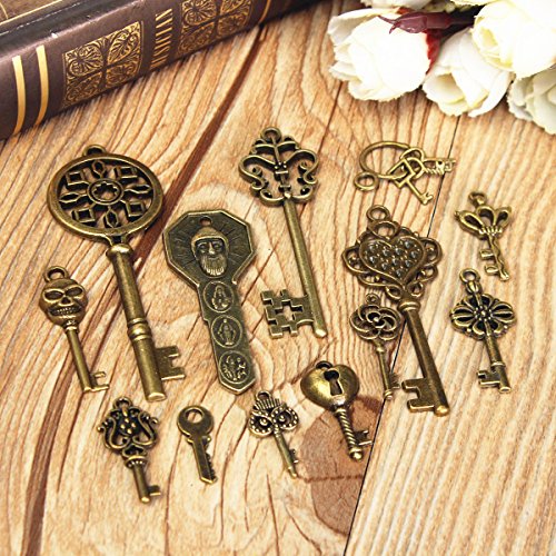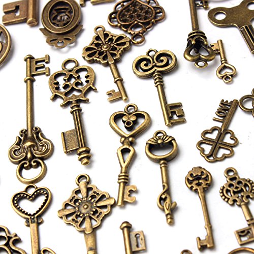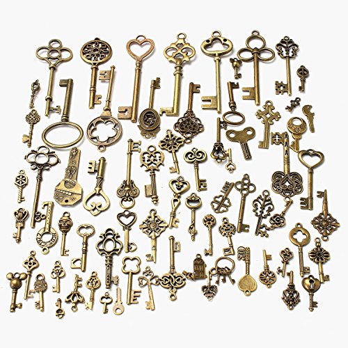 KINGSO 70pcs Antique Vintage Bronze Skeleton Key Charms Set DIY Necklace Pendant Jewelry Making Supplies