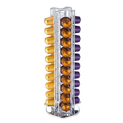 Meelio Nespresso Coffee Capsules Holder Carousel,40 Nespresso Pods (Coffee pods are not included),Silver
