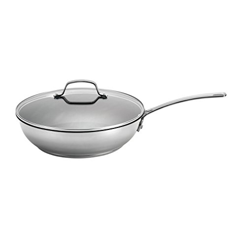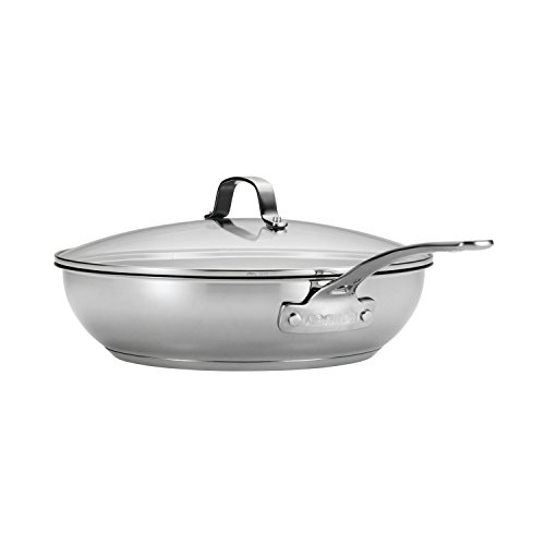 Combining nonstick cooking's healthy benefits with stainless steel's classic style, the Circulon Genesis Stainless Steel Nonstick 12-1/2-Inch Covered Deep Skillet needs no added oils to create delicious foods that release easily. The superior nonstick surface is ideal for sautéing a nutritious medley of summer vegetables and for simmering a hearty meat marinara sauce. An impact-bonded aluminum base provides even, quick heating and is suitable for all stovetops, including induction. Chic, contemporary polished stainless steel exterior provides stove-to-oven-to-table performance and is easy to clean. The skillet looks great on the stovetop whether cooking red potatoes and green onions for a family brunch or pork chops with cherry sauce for a dinner with friends. The interior features the unique TOTAL Food Release System that combines PFOA-free DuPont Autograph nonstick with raised circles to reduce abrasion from utensils and resist scratching, staining and chipping with exceptional food release. The stainless steel handle is solidly double riveted for strength and the shatter-resistant glass lid allows cooking to be monitored while sealing in heat and moisture. All Circulon Genesis Stainless Steel Cookware, including this skillet, is dishwasher safe and oven safe to 500 Degree F. A versatile and essential skillet in the kitchen, the Circulon Genesis Stainless Steel Nonstick 12-1/2-Inch Covered Deep Skillet is perfect for helping make healthy meals.Feature