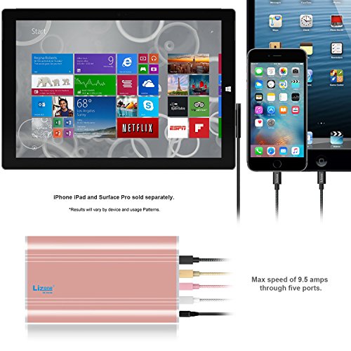 The Lizone Advantage: Join the 5 million+ powered by our leading technology. LED Remaining Capacity with Precision. 5 Ports Compatible with Surface Pro3/Pro4 Surface Book(included Surface Pro Charging Cable) New MacBook 12 (included USB to Type-C Cable); Apple and Android smartphones(All), tablets(All) and other USB-charged devices except for the iPod, HP TouchPad, Dell Venue 11 Pro, Asus tablets and some GPS and Bluetooth devices.