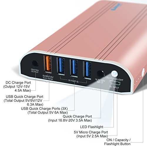 About Lizone 24000mAh QC Portable Charger External Battery Power Bank Charge your Microsoft Surface Pro3/Pro4 Surface Book, Surface, new MacBook 12 or other Tablets or smartphones on the go.