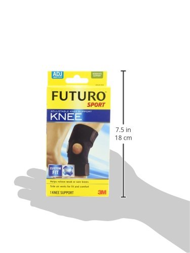 When your knees have something to say, they aren't shy about saying it. Take the edge off and keep doing what you love with the help of the FUTURO Sport Adjustable Knee Support¬. This knee brace provides an open kneecap design that delivers targeted support and help keep you focused on the game. Wrap your knee in the supportive comfort of the FUTURO Sport Adjustable Knee Support. ? Provides moderate compression to weak and sore muscles and joints ? Three adjustable straps for customizable support ? Flexible materials promote a full range of motion and heat retention ? Wear on either knee for versatility ? Ideal for stiff, weak, sore and injured knees ? Resists bunching behind the knee for ergonomic comfort ? Neoprene blend provides soothing heat retention around your joint ? Supported by our expert panel of engineers and medical professionals ? Size: Adjustable ? Color: Black ? Caution: Some individuals may be sensitive to neoprene or neoprene-blend rubber. If a rash develops, discontinue use and contact a physician. 0 |