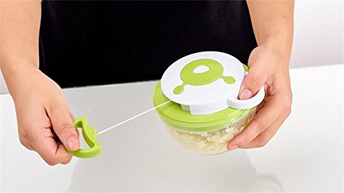 - EASY USE: This hand-powered food chopper goes thru food like a champ, it is mush smother and faster. You want coarse? It's all coarse. You want fine? It's all fine. You might only need to pull the handle twice to be thoroughly done for Salsa, Sauces, Guacamole, Meats, Fruits and Vegetables.