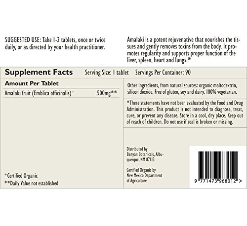 -. Title : Banyan Botanicals Amalaki - Certified Organic, 90 Tablets - For Detoxification & Rejuvenation for Pitta