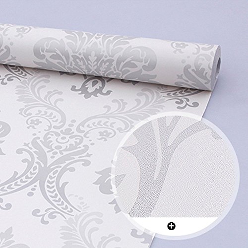 HOYOYO 17x78 Inches Self-Adhesive Contact Paper, Pvc European style Moisture Proof Drawer Paper Shelf Liner Mildew Proof Antifouling Wall paper, Vintage Gray Damask