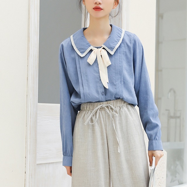 襟元にあしらったリボンタイがきちんと感をプラスしてくれるきれいめブラウスです♪