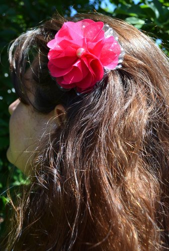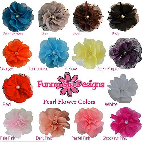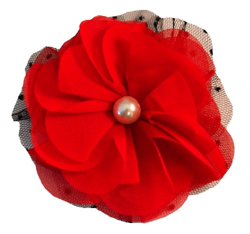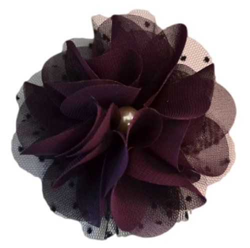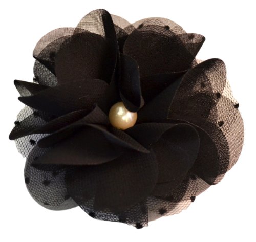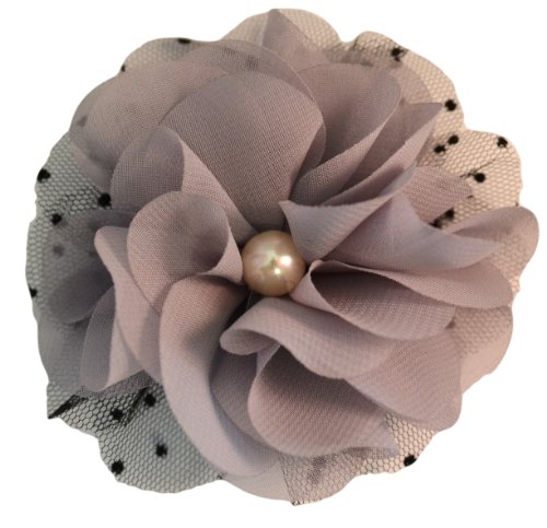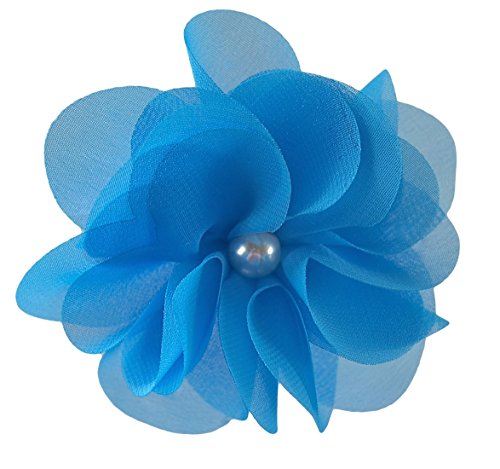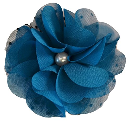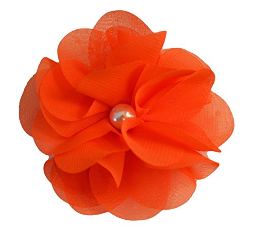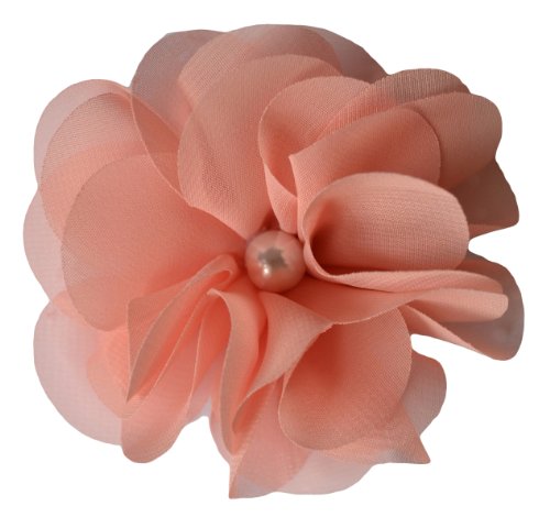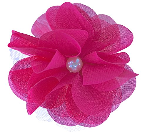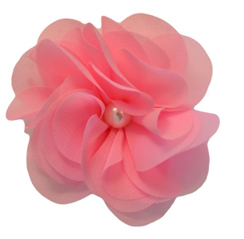 3" handmade chiffon and tulle flower hair clip. The center of the flower features a pearl and is attached to a 1 3/4" alligator hair clip. Many color available!