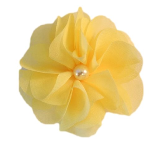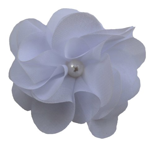 3 inch chiffon hair clip with a pearl in the center.