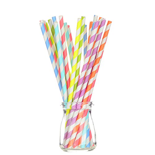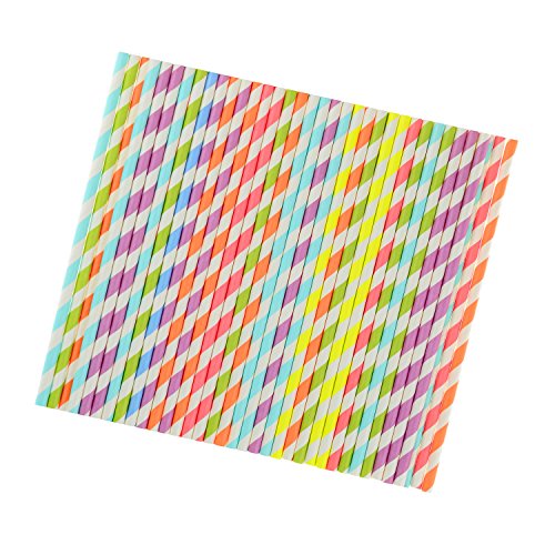 175 Count Striped Paper Straws for Party, Events and Crafts 7 3/4” in Assorted Rainbow Colors of Special Curation (Striped)