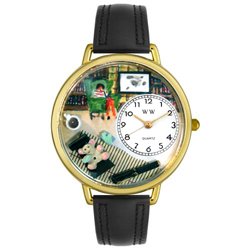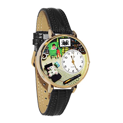 Amazon.com If you have a psychiatrist in your life, then the Whimsical Watches Unisex Psychiatrist Black Skin Leather Watch #G0610010 is just what you're looking for. This fun and fanciful timepiece features a colorful psychiatrist-themed scene alongside a circular white time display with gold-tone hands and Arabic numerals. Precise, high-quality Japanese quartz movement ensures time-keeping reliability, while the black, skin leather band offers a secure, comfortable fit. A gold-tone stainless steel bezel surrounds the 42-millimeter case and rounds out the details of a watch that every psychiatrist is sure to love. This whimsical watch is water resistant to 100 feet (30 meters). 0