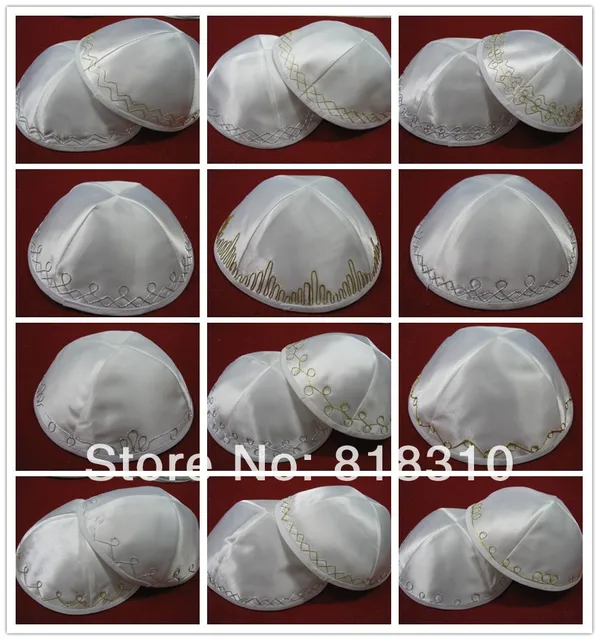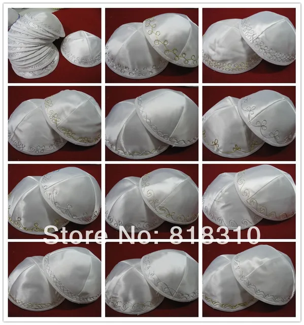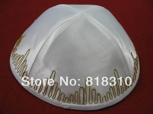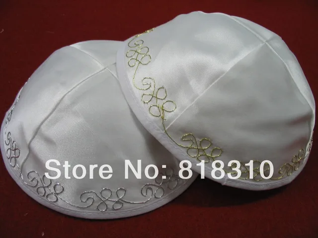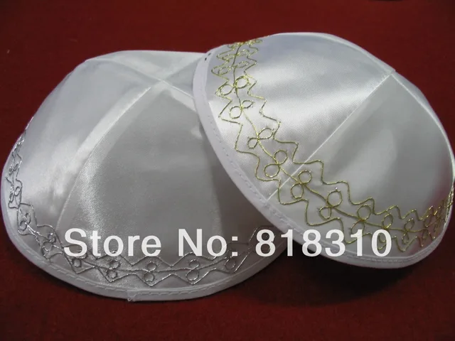 | [해외]화이트 새틴 자수 유태인 KIPPAH YARMULKE KIPPOT 최소 주문 200 조각 |