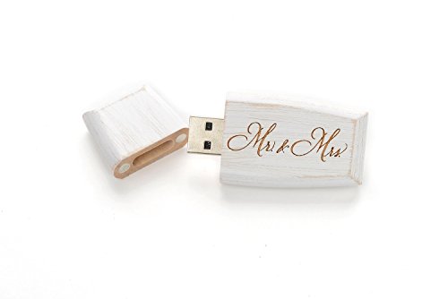 Maple White Wash 16GB USB 2.0 Flash Drive - Wildwood Body Design - Inserted into a Engraved Maple Wedding White Box with Raffia grass inside. Laser Engraved "Just Married" Design!