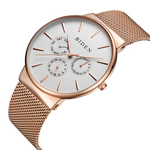 -. Feature : PRECISE TIME KEEPING:High quality JapanePRECISE TIME KEEPING:High quality JapanClASSIC LUXURY DESIGN: Luxury&elegant style, super thin dial with multi-function sub-dials, dress/business watch, a great gift for family or friends. / CLASSIC STYLE: Cool classic style, suitable for all kinds of activities,such as :birthday party,evening party ,picnicCLASSIC STYLE: Cool classic style, suitable for all kinds of activities,such as :birthday party,evening party ,picnicACCURATE TIME KEEPING: High quality japanese quartz movement with analog display, provide precise time keeping. / SOFT DURABLE MILANESE BAND: High quality milanese mesh bracelet watch band, soft, durable and comfort can provide comfortable wearing experience., adjustable pin buckle make you adjust the band easily / WATERPROOF for 30M: Stainless steel durable waterproof case cover, Hand Wash, Rain Day, Sweating, NO Problem.In general, withstands splashes or brief immersion in water, but not suitable for swimming. (Please DONOT PULL OUT the button under water ) Perfect for all kind of business, casual, indoor activities or daily use. / Any question about the product , pls contact BIDEN FASHION,we will try our best to help to solve your problem.