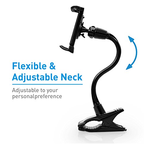 -. Title : Macally Flexible and Adjustable Gooseneck Clip On Desk or Kitchen Table Holder Clamp Mount for iPad, iPhone, Tablets and Smartphones (ClipMount)