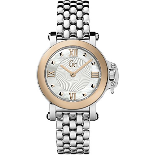 - Silver-tone metal band and gold plated stainless steel case with silver-tone dial