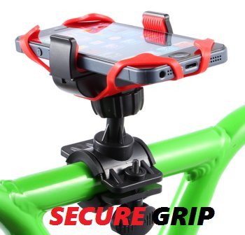 -. Feature : UNIVERSAL PHONE MOUNT SIZE: Designed to fit any smart phone up to 3.5" wide. Mounts to any bicycle and motorcycle handlebar with a .63-1.06 inch diameter **Please note that this does not fit all bicycle handlebars, measure the size of your handlebars to ensure it will fit before purchasing**. Phones it holds are those that are 2.3-3.5 inches wide with the case. Apple iPhone 6/6s, iPhone 5s, iPhone 5c Samsung Galaxy S6, Galaxy S5, S4, Google Nexus, HTC, Edge S5 Edge S4 Edge S3 and much more! / STRONG & SECURE: Our adjustable arms and silicone band holds your phone firmly in place. / UNCLIP & GO: Take your phone out quick and with ease so you won't miss any phone calls. / 360 FLEXIBLE DESIGN: The mount enables you to rotate your phone for a portrait or landscape view. / MOUNT TO ANYTHING: If your bar fits the descriptions diameters you can mount it. This includes: Strollers, Bikes, Motorcycles, Treadmills, Shopping Carts, ATVS, and more!