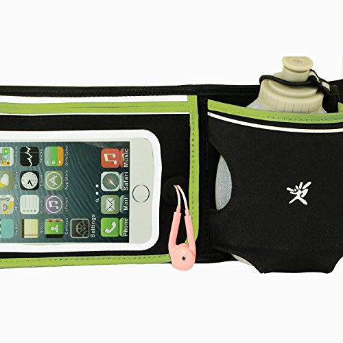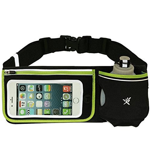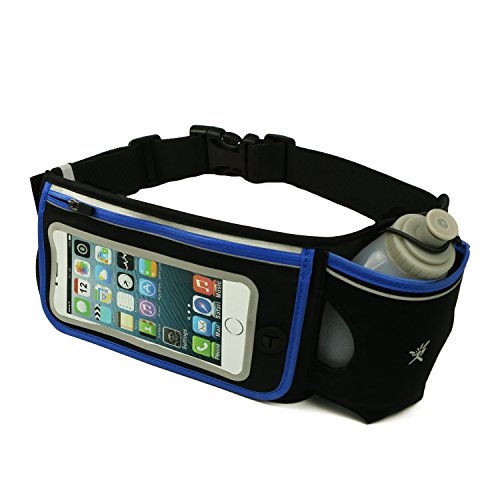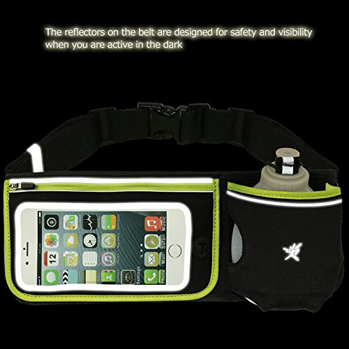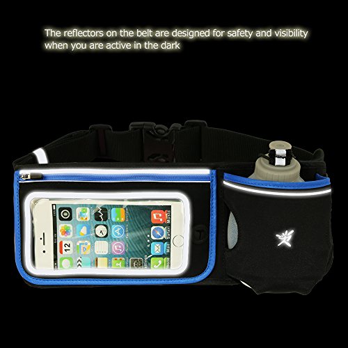 Features: 1. NEOPRENE MATERIAL: Soft touch and lightweight,stretchy,water-proof and tear-resistant; very comfortable to wear and you will hardly notice you are wearing it; 2. FREE BONUS - 2x 10 Oz BPA-Free, leak-proof water bottles keep you hydrated in race; contoured shape and textured grip on both sides offer the most popular bottles in running, jogging, hiking, camping, hiking, climbing and other outdoor activities; 3. LARGE SPACE - This hydration belt has a roomy zippered pocket (7.3' x 4') that can accommodate most smartphones, keys, ID, cards, sunglasses, energy bars, gel packs and other valuables safely. 4. VERSATILE USE: Running, hiking, camping, jogging, sprinting, any outdoor activities where you would need a runner's belt for water and phone. 5. COMFORTABLE TO WEAR: Neoprene fabric offers soft touch, and soft-grip gel-based interior reduces shaking and offers bounce-free experience; 6. ADJUSTABLE WAIST: Strong buckle clips are easy to wear, 2 adjustable buckles fit waist from 29 inches to 50 inches; 7. SECURE AND CONVENIENT to WEAR: Elestic loops on the top of the bottles ensure secure and firm; Reflectors make you highly visible while running at night;