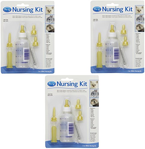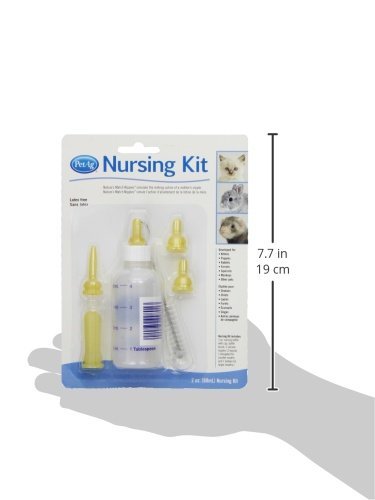 Studio : PetAg Publisher : PetAg Binding : Misc. Product Description This nursing bottle is designed and developed by a veterinarian for hand-feeding puppies, kittens, and other newborn small animals. Specially-designed nipple duplicates milking action of mothers nipple. Kit contains feeding bottle conveniently marked in tablespoon measurements for accurate feeding, soft nipples, and cleaning brush. The bottle, nipples, and bottle brush can all be sterilized by boiling in water. Comes with 2-ounce bottle. Measures 7-1/2-inch length by 5-1/2-inch width by 1-1/2-inch height. 0