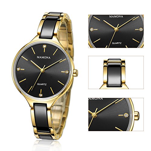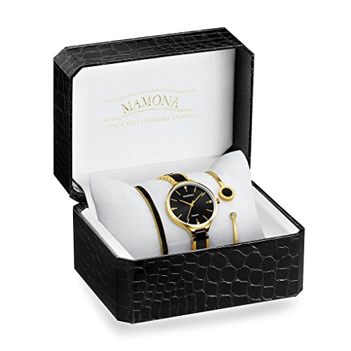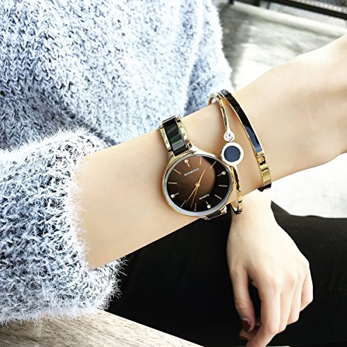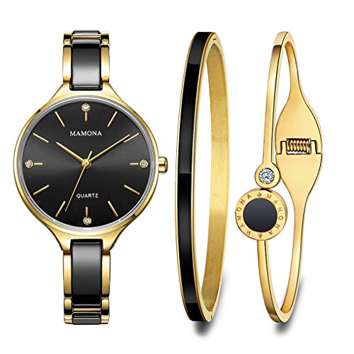 NOTE: The Watch and Bangles in This Set are Made of Stainless Steel, Not Alloy. Alloy Products are Cheaper to Make, and The Color is Very Easy to Get Depreciated. Please Check the Material Before Comparing the Price This is a Perfect Gift Set, includes: - A Stunning Stainless Steel and Ceramic Watch.