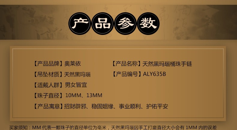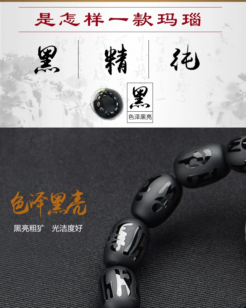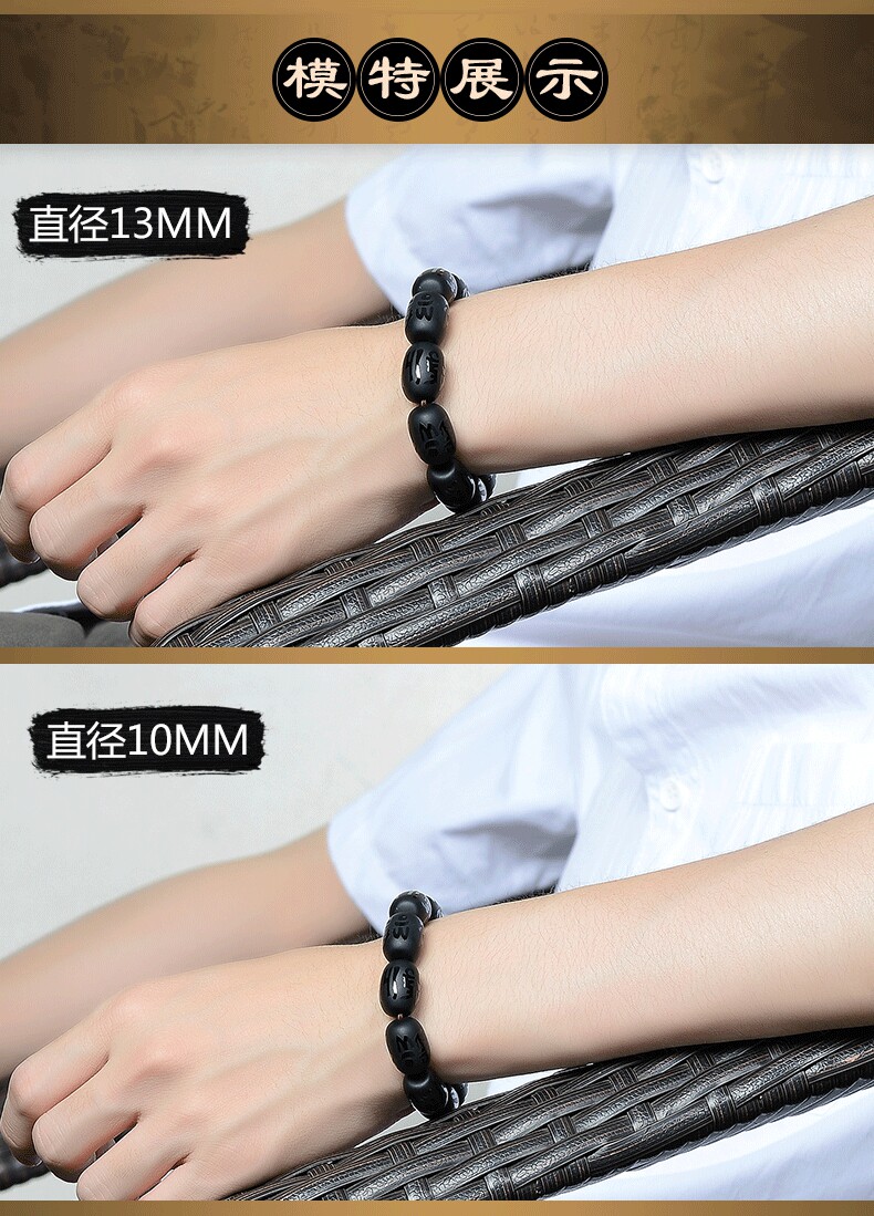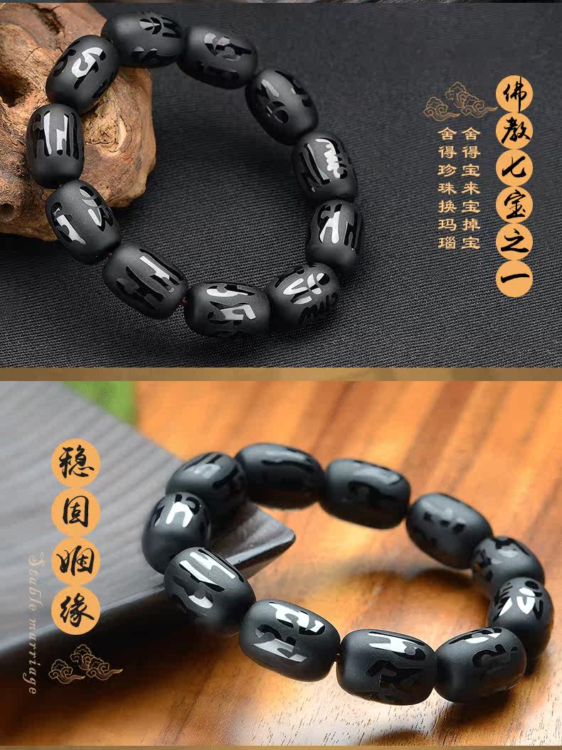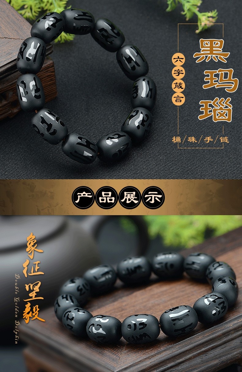 天然黑玛瑙手链女六字真言箴言桶珠磨砂手串男水晶佛珠个性手饰品