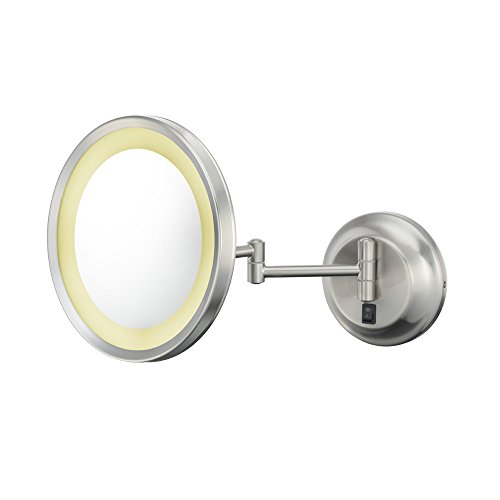 Kimball & Young 92475HW Single-Sided LED Wall-Mounted Hardwire Round Mirror, 5X Magnification, Brushed Nickel