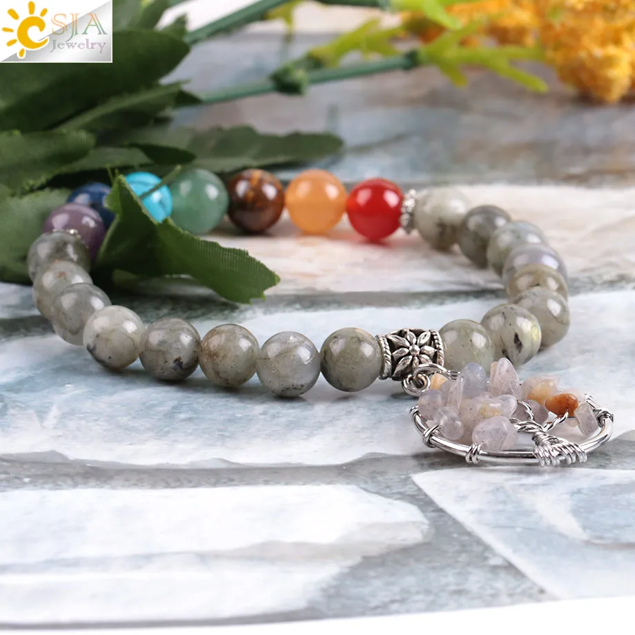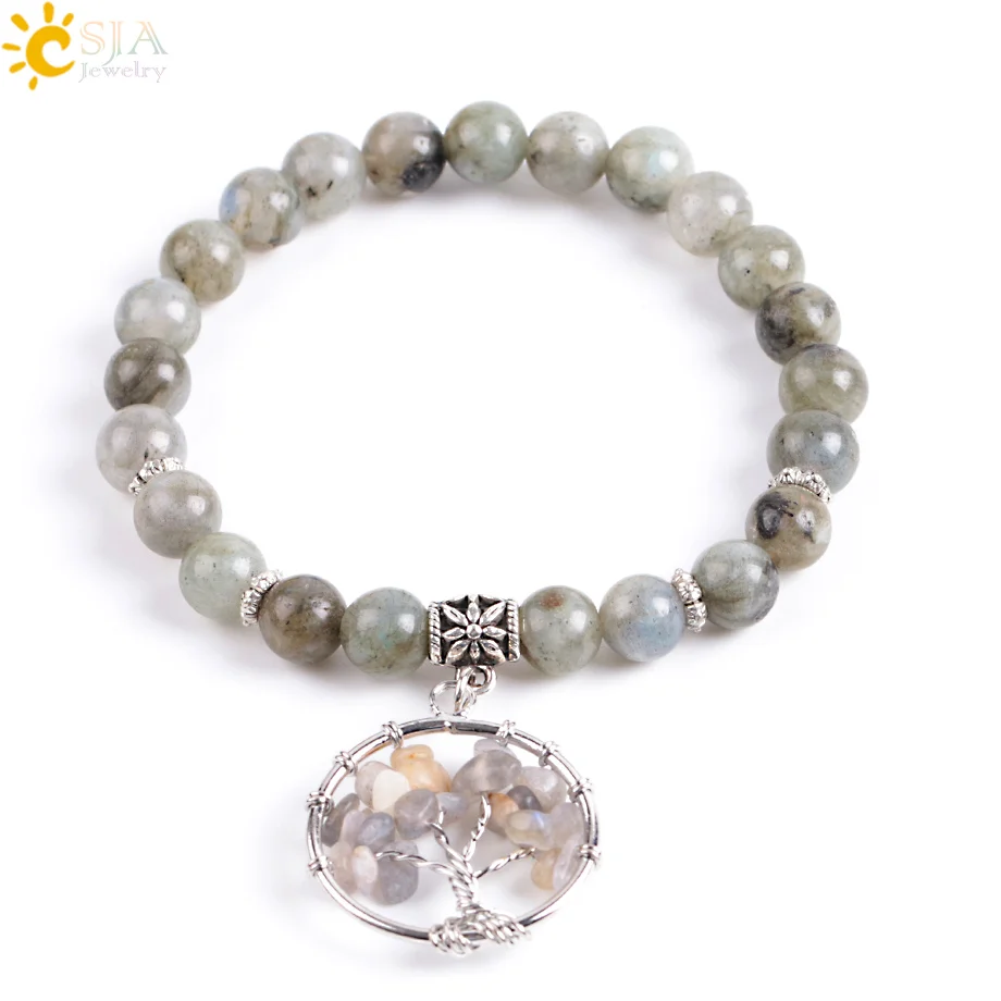 Product Name:8mm Natural Energy Stone Beaded Bracelet with Life Tree Pendant