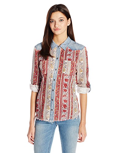Miss Me Women's Long Sleeve Floral Chambray Shirt