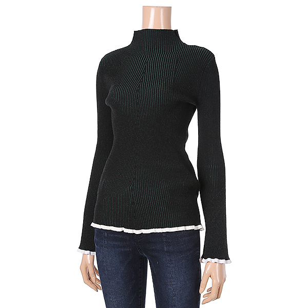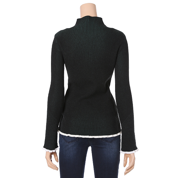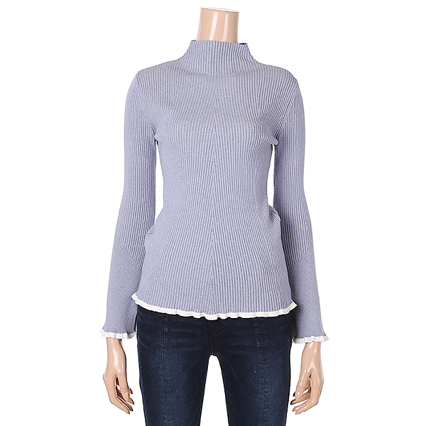 밑단과 소매 끝단 라인이 페미닌한 느낌을 주는 반폴라 골지 니트