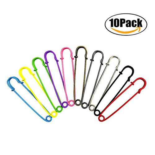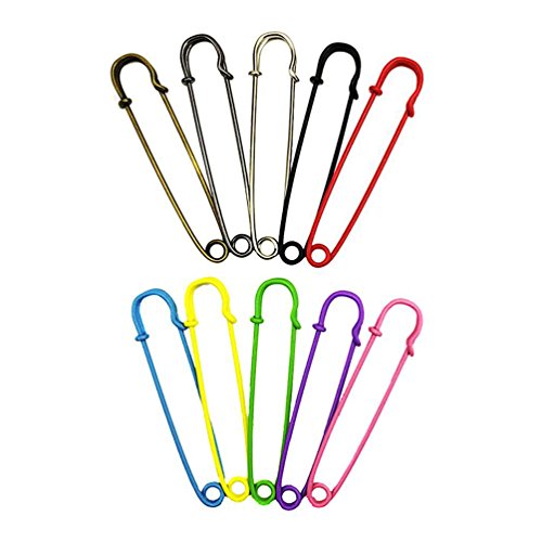 FBAPluto 10 PCS 10 Colors 2 Inch Giant Safety Pins Heavy Duty Giant Safety Pins Steel Safety Pins Big Pins in Blankets, Skirts, Kilts, Knitted Fabric and Crafts