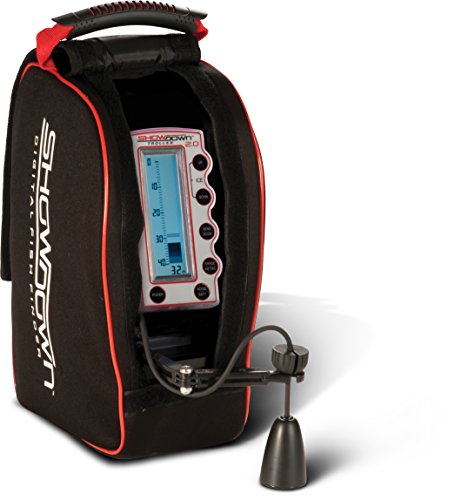 -. Feature : 5-inch Vertical LCD Display / 20-degree Transducer with 6' cable, 120-foot Range with Auto Depth Scale function / 12-volt 7-amp Battery and Charger included w/battery status indicator / Performance Pack and Neck Lanyard Included / One year warranty / 4,000 watts of power / 2" target separation / 5-inch digital vertical LCD monitor / Cone angle-20 degree transducer with 8' cable / 10 level interference rejection