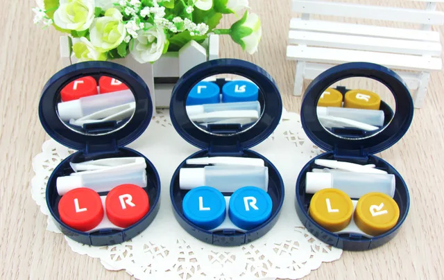 100% 브랜드 새로운 높은 품질사랑스러운 스타일 콘택트 렌즈 케이스, 그들은 도움이 생활휴대용 및 휴대하기 쉬운재질: 플라스틱색상: 3 패턴사이즈: 7×cm