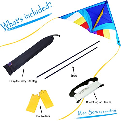 EMMAKITES 60-inch Pretty Miss Sora (sky in Japanese), delta kite specially designed for kids above 3, and any person who never flies kite before. Miss Sora is designed from inspiration to express clean sky with rainbow after rain into a real thing.