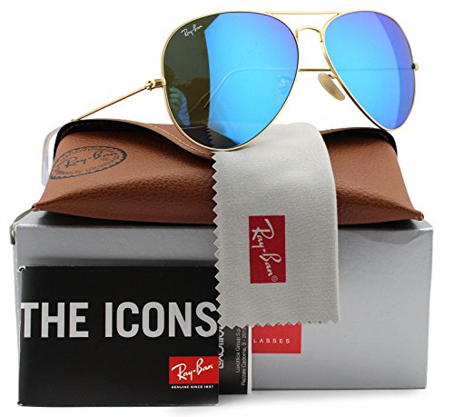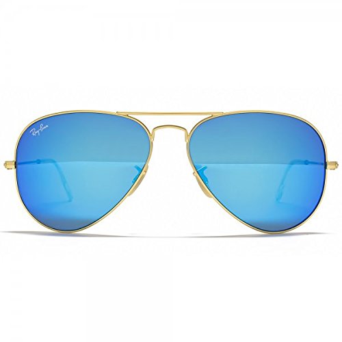 -. Feature : Model: RB3025 Large Classic Aviator / Color Code: (112/17) Matte Gold w/Blue Mirror Lenses. / Gender: Unisex / Size: 62-14-140 / Made: Italy