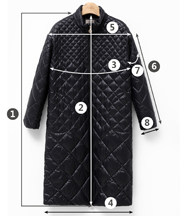 | 尺码 | ①前衣长 | ②后中长 | ③胸围 | ④下摆围 | ⑤肩宽 | ⑥袖长 | ⑦袖臂围 | ⑧袖口围 | ||