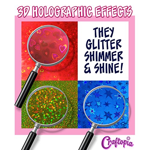 MAKE YOUR CRAFTS PROJECT POP with our Holographic Sheets - A glamorous combination of vibrant colors, stars, sparkles, sequins, hearts, and peach rain.