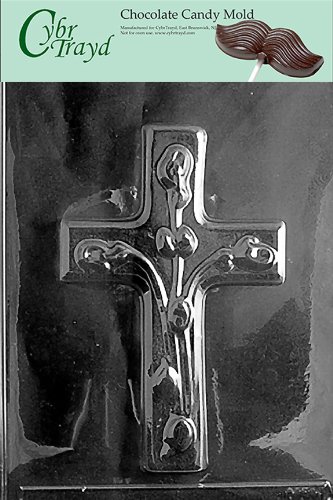 Cybrtrayd R038 Medium Cross with Flowers Chocolate Candy Mold with Exclusive Cybrtrayd Copyrighted Chocolate Molding Instructions plus Optional Candy Packaging Bundles