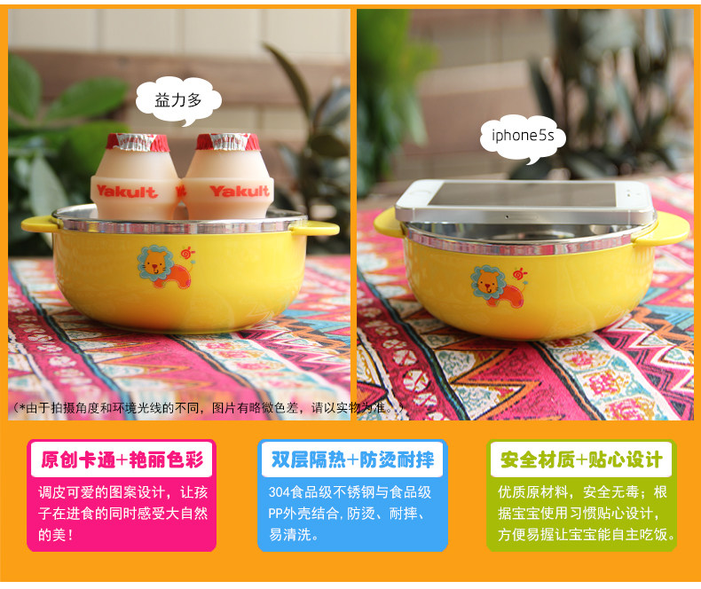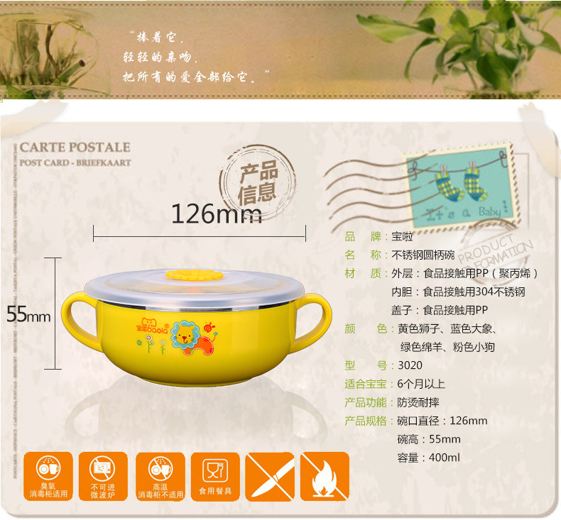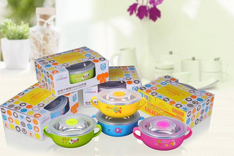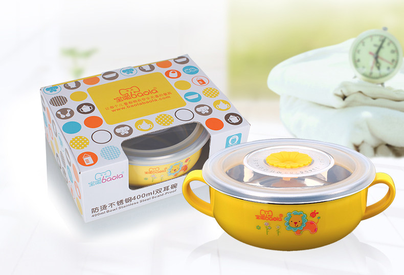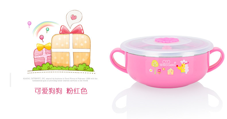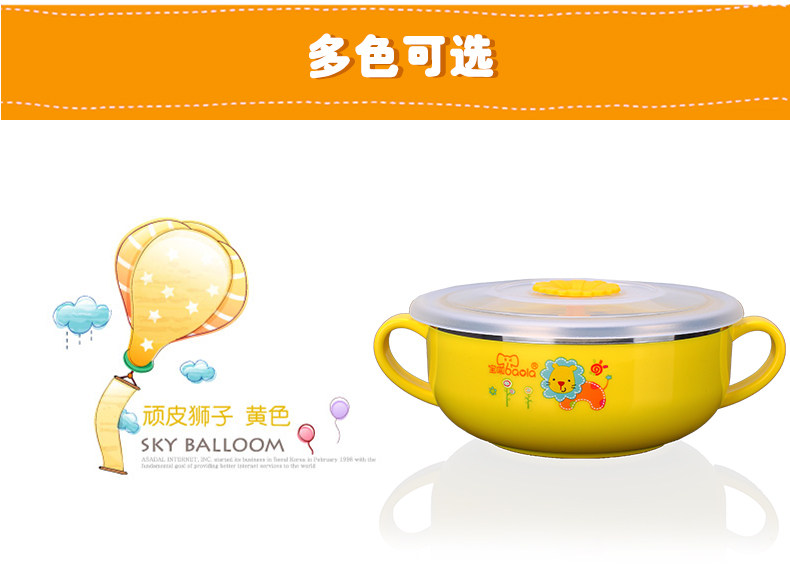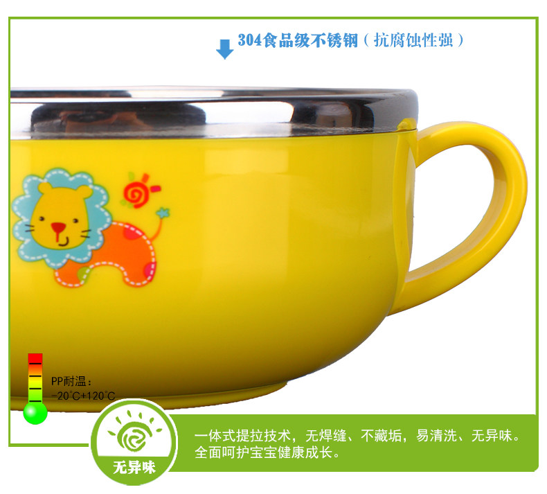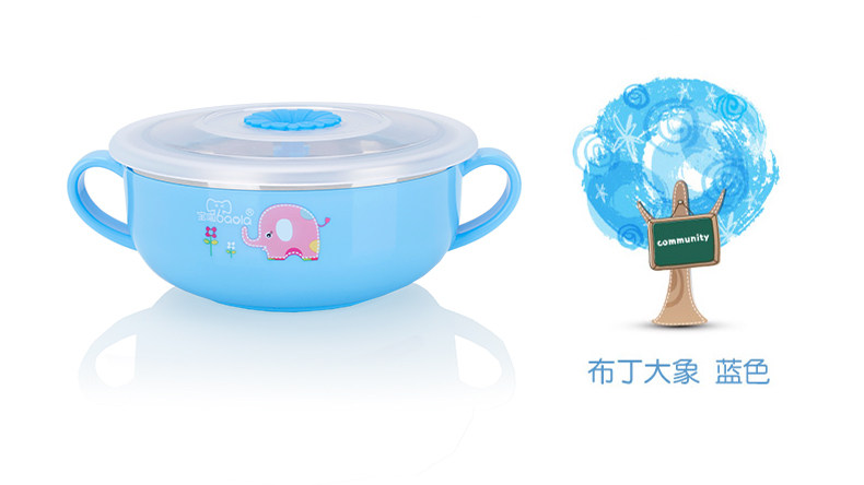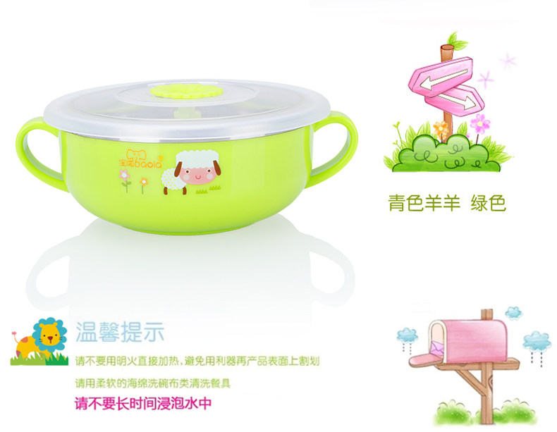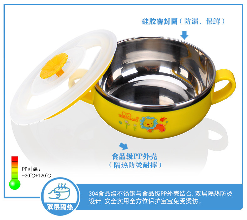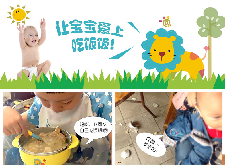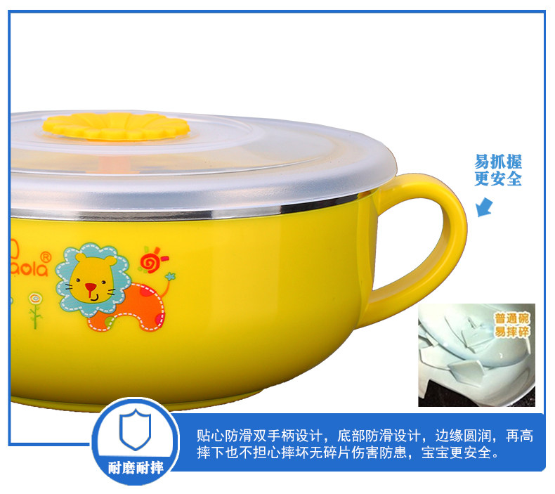 儿童餐具不锈钢饭碗 双耳朵把手柄带盖辅食碗防烫耐摔宝宝碗