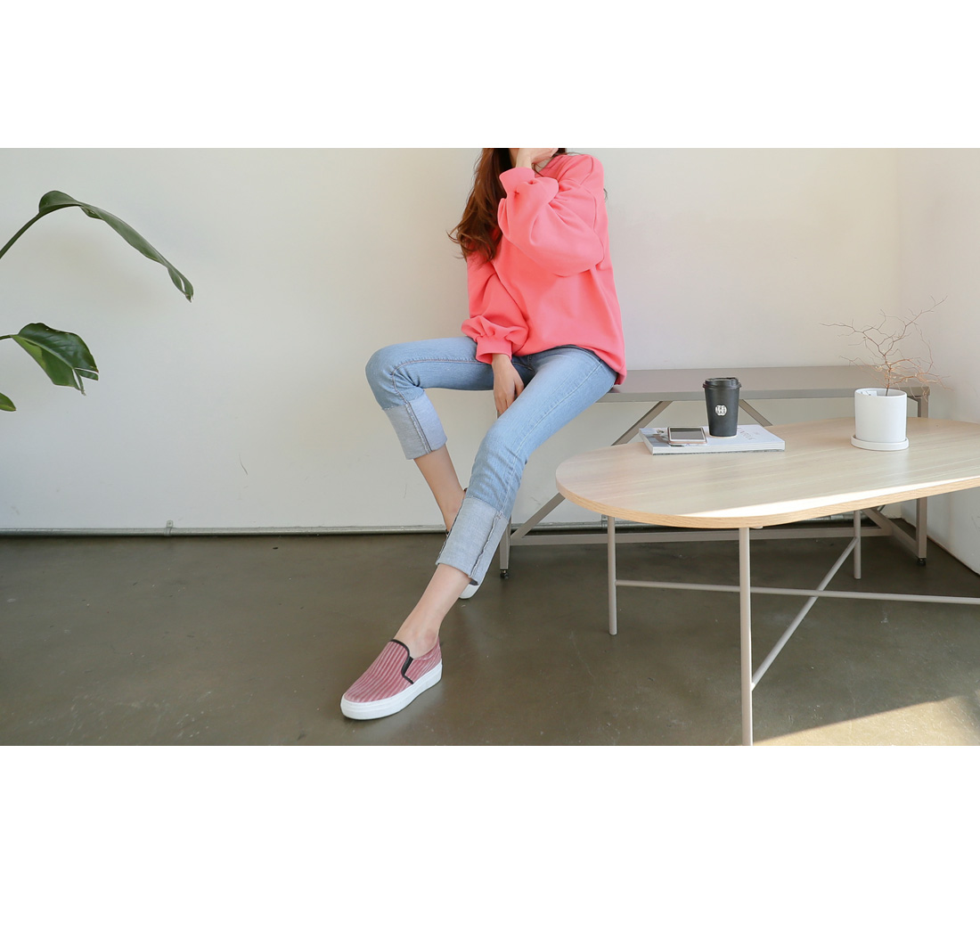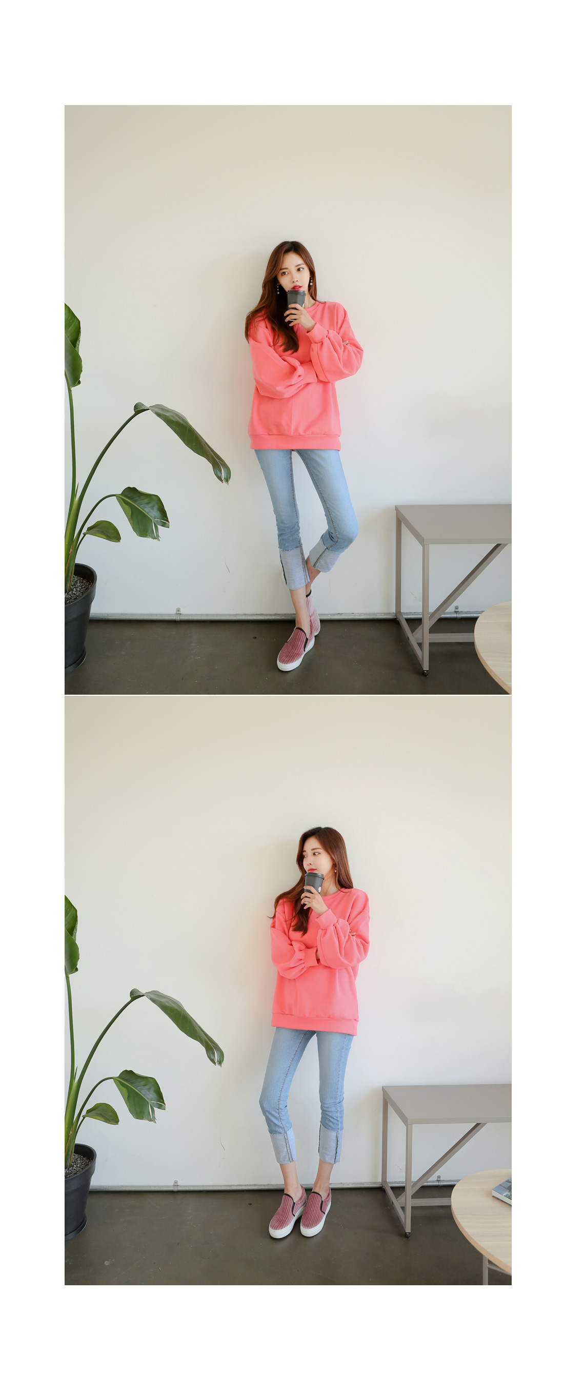 살짝 컷팅된 밑단을 포인트를 살려주며