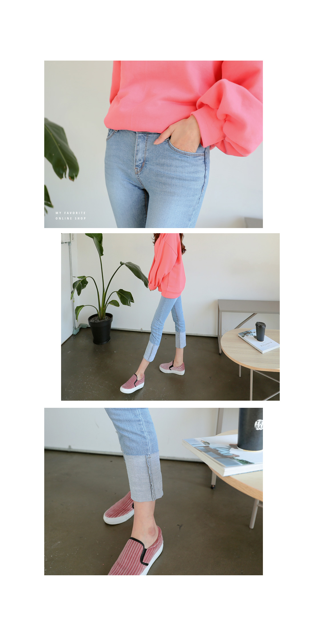 멋스러운 라이트 컬러감이 돋보이는 롤업 데님 팬츠 소개 해 드릴게요.