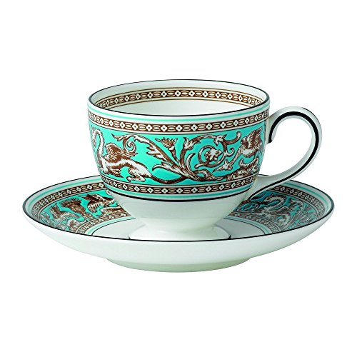 -. Binding : Kitchen -. Brand : Wedgwood -. Color : Blue -. EAN : 0701587271981 -. Feature : Made in Barlaston, England / Hand wash recommended / Boxed in Wedgwood Plus packaging / Made out of Fine Bone China / Black Enamel Banding -. Label : WWRD -. Manufacturer : WWRD -. Model : 40018022 -. PackageQuantity : 1 -. ProductGroup : Kitchen -. ProductTypeName : KITCHEN -. Publisher : WWRD -. Studio : WWRD -. Title : Wedgwood Florentine Turquoise Teacup & Saucer Set, Blue -. UPC : 701587271981