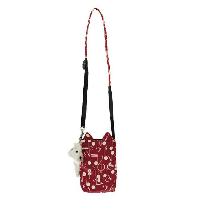 | スマートフォンや小物を入れてお出掛け♪500mlのペットボトルも入る大きさです。ショルダーの長さは調節できるので便利♪猫雑貨が好きな方へのギフトにもオススメです。 |