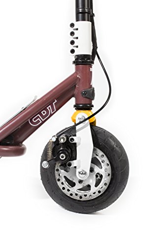 -. Feature : Disc brake with hand actuated lever for ultimate stopping power / Hybrid aluminum and CDT (Composite Deck Texture) surfacing for a durable and controlled ride / Electronic speedometer and digital read out integrated into handlebars / 24-volt battery system for a ride time of up to 40 minutes
