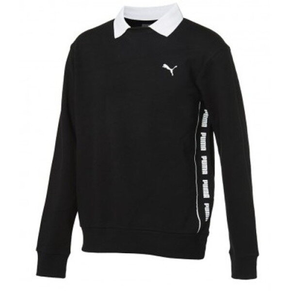 레트로 클래식 무드의 칼라 크루.레이어드 칼라와 사이드 심에 삽입된 배색 파이핑 디테일,반복되는 푸마 로고 프린트가 디자인 포인트.깔끔한 레트로 스타일로 연출 가능한 제품.