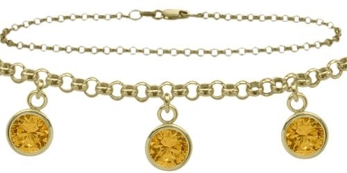 -. Title : 10K Yellow Gold Belcher Anklet with Genuine 1.65 Carat Citrine Round Charms