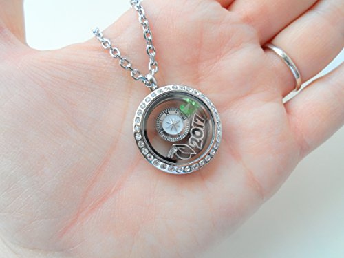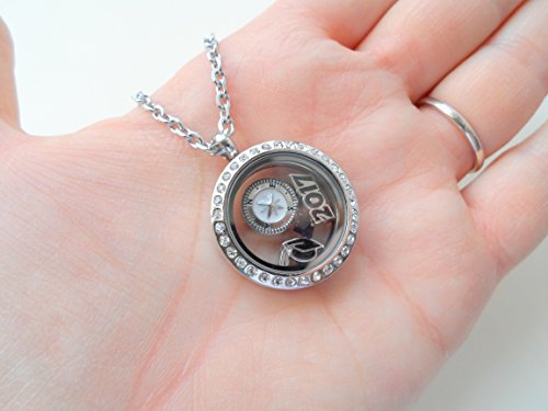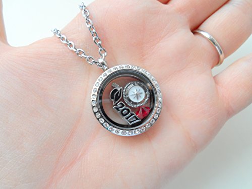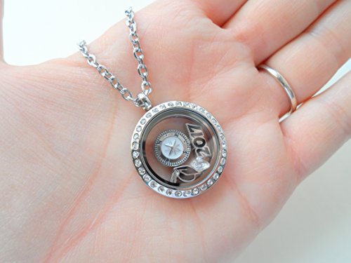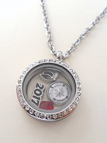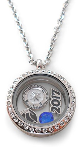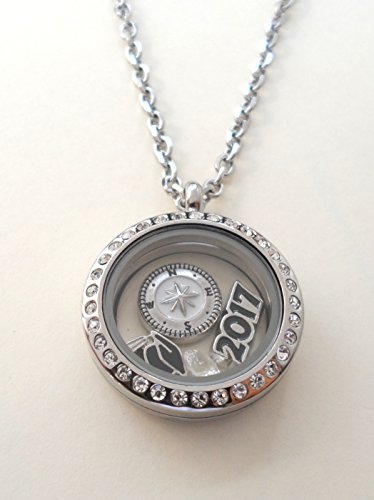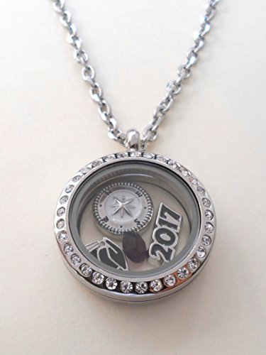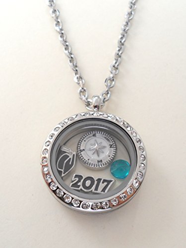 -. Feature : Stainless steel floating locket necklace for the new graduate / 2017 graduation gift necklace, Class of 2017 gift locket necklace / Locket necklace comes on card with saying "Good luck on the path ahead of you" / Comes on 20 inch chain, Opens and closes by magnet / Comes with 4 charms: 2017 charm, graduate cap charm, compass charm, and birthstone crystal charm.
