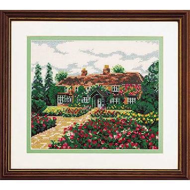 | 色とりどりのししゅう糸を使って表現した、花のある美しい風景。技法はクロスステッチ。額・マット紙(W-54)は別売り。技術レベルは中級~上級者向。 |