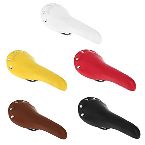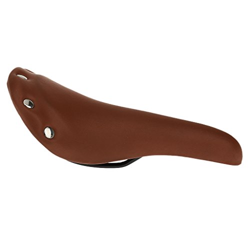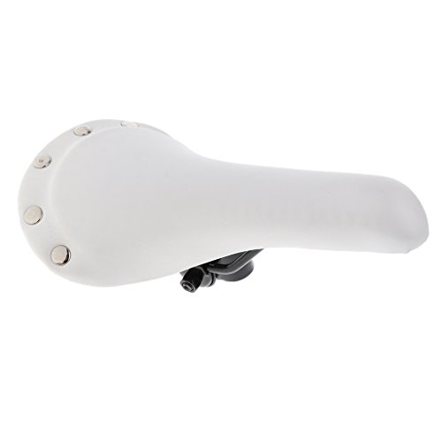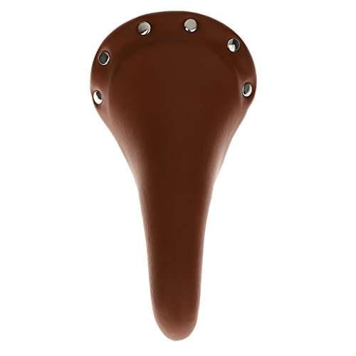 Ideal for Road / Racing / Fixie / MTB?and other kinds of bicycles. Made of thickness high density foam and leather cover, very comfortable. Material: leather and stainless steel Size: length: 28cm; front width: 3.5cm; rear width: 16cm Color: As you pick