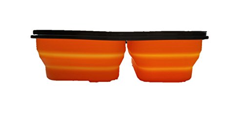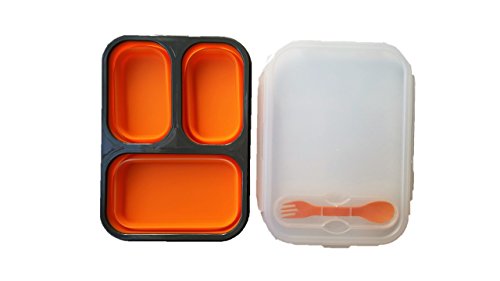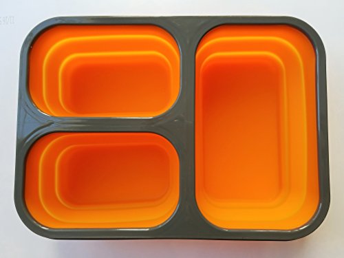 Collapsible Bento Box Lunch Box, 3 Portion Control Compartments Meal Prep Food Storage BPA Free Silicone with Build in Utensil (Orange)