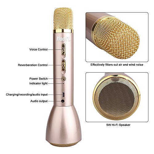♪EASY TO HOLD AROUND♪: Hooyl Karaoke is lightweight andfits in hand very well. A Handheld Wireless Microphones with a portable mini home KTV for Music Playing and Singing at anytime.