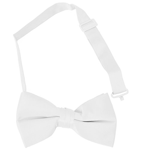 Binding : Apparel Product Description A bow tie?consists of a ribbon of fabric tied around the?collar?of a?shirt?in a?symmetrical?manner so that the two opposite ends form loops.?These pre-tied bow ties are ties in which the distinctive bow is sewn onto a band that goes around the neck and clips to secure. Our poly solid satin bow ties for kids offer the perfect blend of quality, affordability and style. Dress to impress for events or special occasions for a fraction of the cost. 0